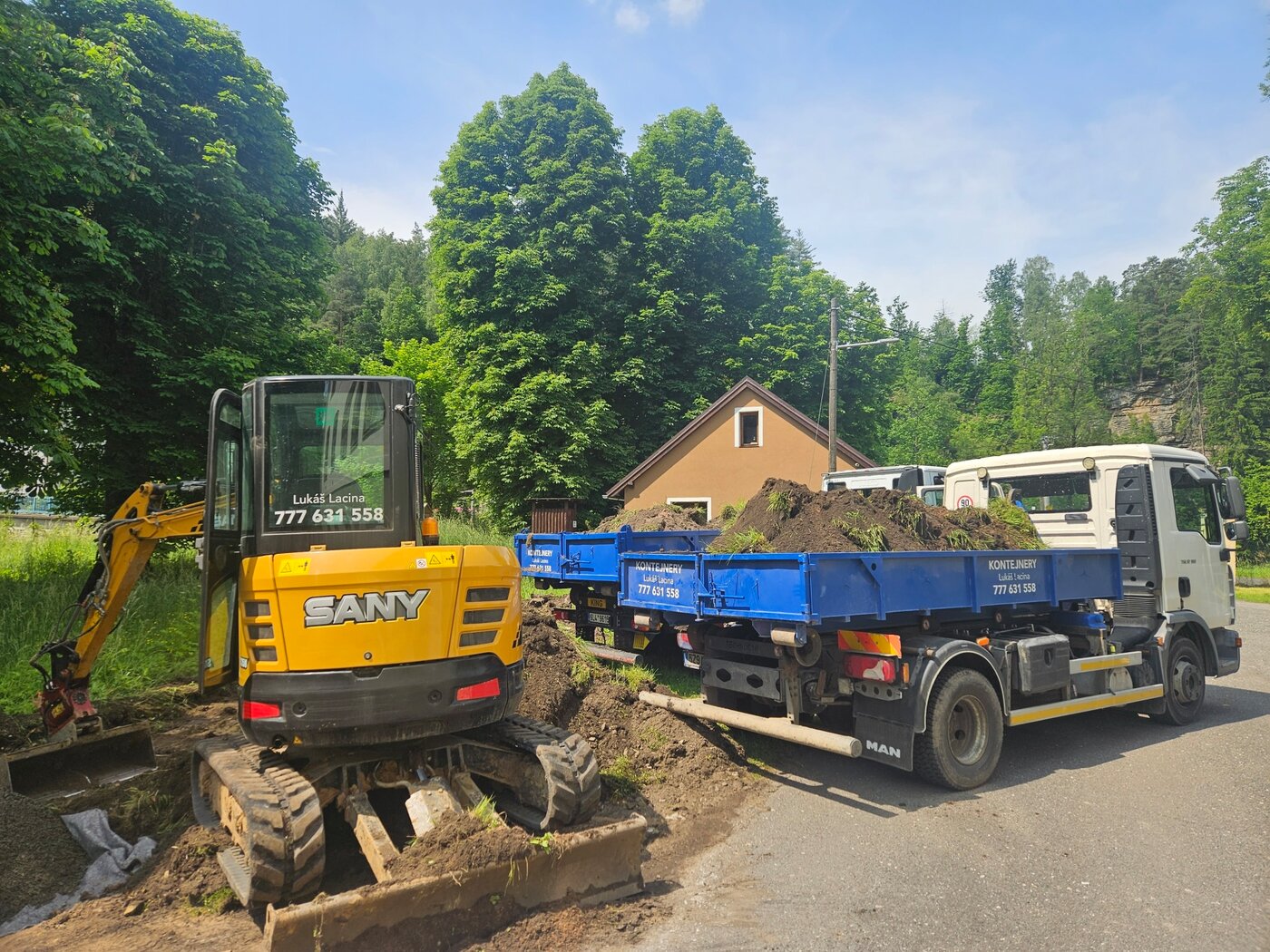- Naložení a odvoz zeminy či stavební suti – včetně zajištění kontejnerové dopravy